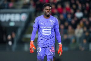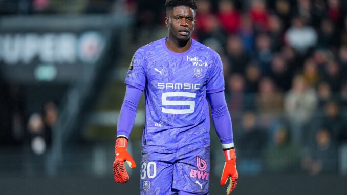 RENNES, FRANCE – FEBRUARY 13: Brice Samba of Stade Rennais FC looks on during the Ligue 1 McDonald’s match between Rennes and Paris Saint-Germain at Roazhon Park on February 13, 2026 in Rennes, France. (Photo by Franco Arland/Getty Images)